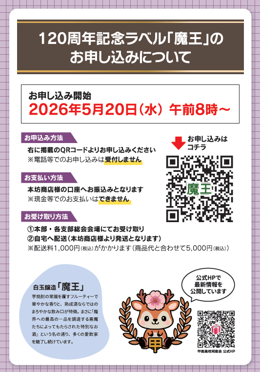 魔王につきましては、チラシに記載のQRコードより予約が必要です